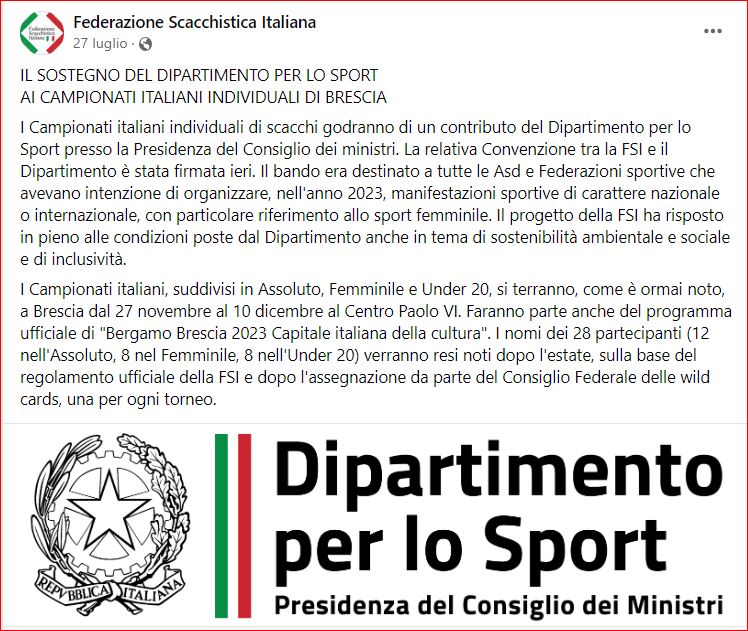 COME SI E’ RINGIOVANITA LA FEDERAZIONE SCACCHI | 30-11-2023 | | GENOVA CHESS OLYMPIAD 2028 CANDIDATE | 30-11-2023 |